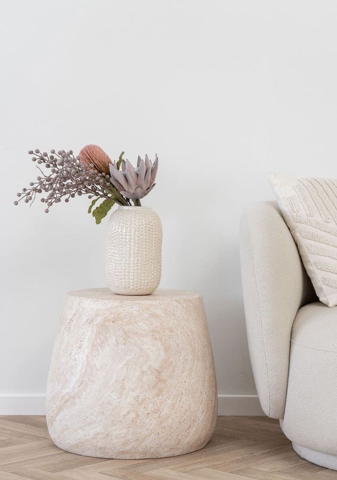Verleihe Deinem Wohnraum einen Hauch von Luxus mit diesem eleganten Fasersteintisch in edler Marmoroptik. Der Tisch ist nicht nur ein echter Blickfang, sondern fügt sich auch perfekt in moderne sowie klassische Einrichtungsstile ein. Ob im Wohnzimmer, Schlafzimmer oder Flur – dieser Tisch sorgt überall für einen stilvollen Akzent und bietet gleichzeitig Kombinationsmöglichkeiten für deine Deko-Objekte.
