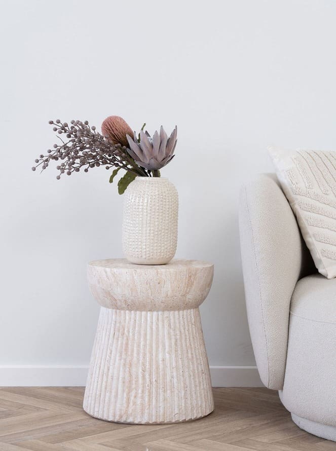 Verleihe Deinem Wohnraum einen Hauch von Luxus mit diesem eleganten Fasersteintisch in edler Marmoroptik. Der Tisch ist nicht nur ein echter Blickfang, sondern fügt sich auch perfekt in moderne sowie klassische Einrichtungsstile ein. Ob im Wohnzimmer, Schlafzimmer oder Flur – dieser Tisch sorgt überall für einen stilvollen Akzent und bietet gleichzeitig Kombinationsmöglichkeiten für deine Deko-Objekte.