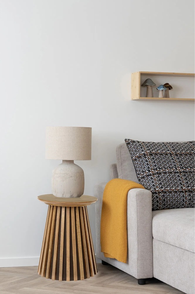 Der Osaka Beistelltisch vereint schlichte Eleganz mit zeitlosem Design. Seine runde Tischplatte aus Eichenfurnier sorgt für ein warmes, natürliches Erscheinungsbild, während die gerippten, sanft zulaufenden Beine dem Möbelstück einen stilvollen Charakter verleihen. Ob im Wohnzimmer, Schlafzimmer oder Eingangsbereich – der Osaka setzt überall einen geschmackvollen Akzent. Durch seine kompakte Größe ist er flexibel platzierbar und bietet dennoch genügend Fläche für eine Lampe, Bücher oder dekorative Elemente. Ein praktisches und ästhetisches Möbelstück, das sich harmonisch in unterschiedliche Einrichtungsstile einfügt.