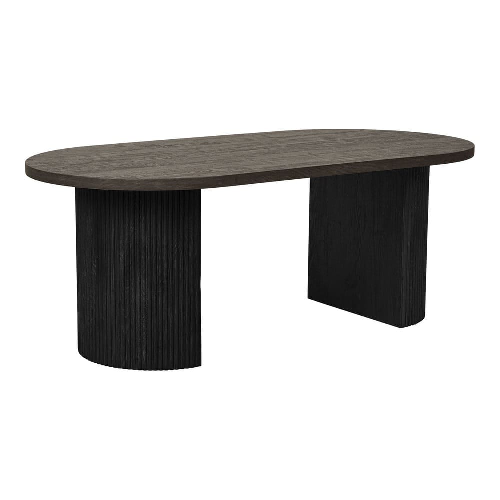 Der Boavista-Couchtisch verfügt über eine ovale Platte mit dunkelbraunem Finish und eine einzigartige gerippte Basis. Dieser stilvolle Couchtisch verleiht jedem Wohnzimmer einen Hauch von modernem Design.