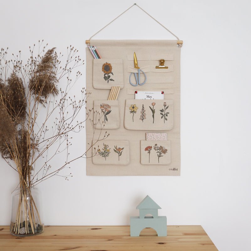 Unsere Flora-Wanddekoration aus 100 % Baumwolle passt ideal in die Dekoration des Kinderzimmers. Flora ist nicht nur eine Wanddekoration, sondern auch ein Aufbewahrungsaccessoire für Dein Kind! Dank seines Holzständers lässt er sich einfach und schnell überall im Haus aufhängen. Sein botanisches Motiv verleiht dem Raum Zartheit und Eleganz! Einmal getestet, wird es schwer, darauf zu verzichten!